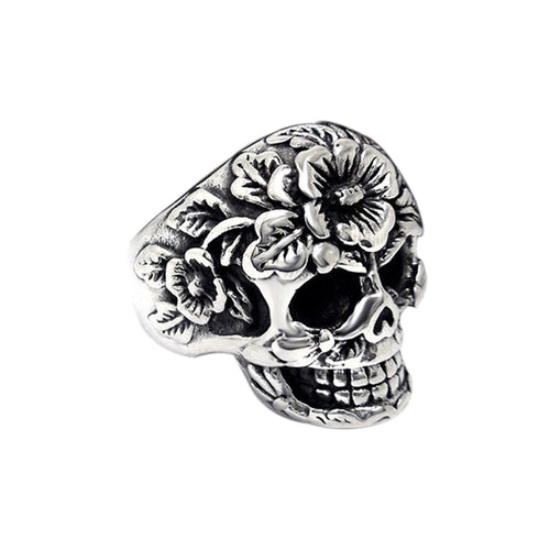 Men Jewelry Vintage Embossed Flower Stainless Steel Mens Punk Ring